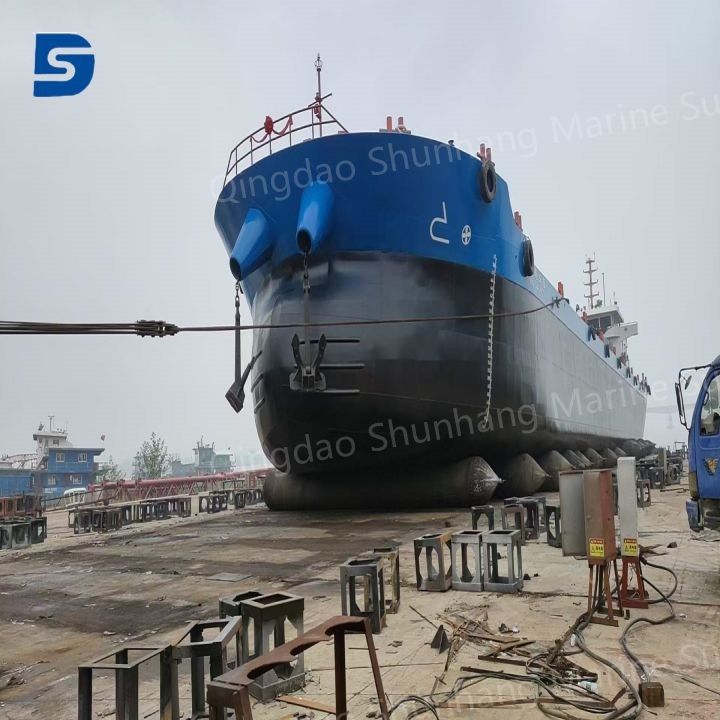 One of the primary application occasions for the Shunhang SHA260102 airbags is ship launching. These marine airbags are essential tools for safely and efficiently launching vessels from dry docks or shipyards into the water. By providing a stable and cushioned support, they reduce the impact forces and protect the hull from damage during the launching process. Their cylindrical shape allows for easy placement and optimal load distribution, which is crucial for handling ships of various sizes and weights.